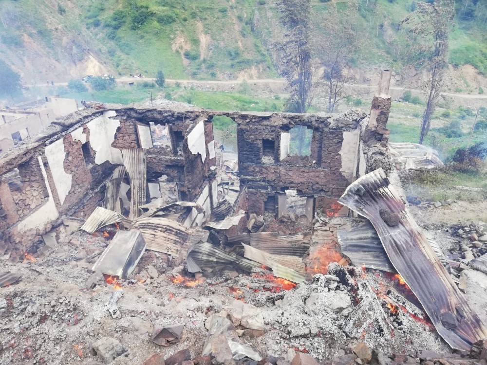 Artvin’in Yusufeli ilçesi Dokumacılar köyü Sahlepçiler mahallesindeki yangın kontrol altına alındı