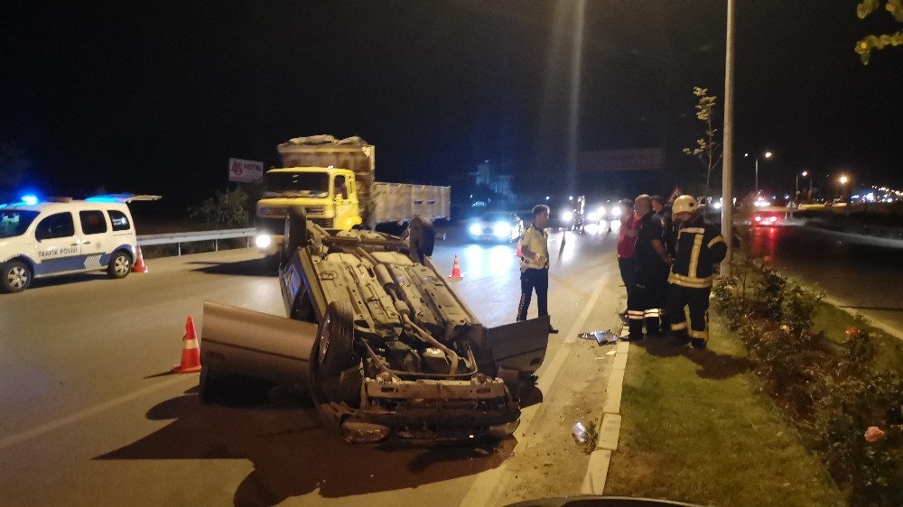Kontrolden çıkan otomobil önce kaldırıma çarptı ardından takla attı: 2 yaralı